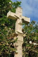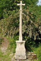 La croix se compose d’un fût octogonal très décoré par des rinceaux, mais aussi par quelques symboles liturgiques et des instruments de la Passion. Sur le socle, on peut lire l’inscription suivante : « A la dévotion de Pierre Lavaux et d’Anne Lebel son épouse, et de François Lavaux son fils, 18.. » (date effacée). L’histoire nous apprends qu’après le mariage le 8 février 1796 à Isômes (pays de la mariée) de Pierre Lavaux (veuf de 57 ans) et de Anne Lebelle (45 ans), le marié s’était engagé dans les armées de Napoléon et avait fait plusieurs campagnes jusqu’en 1814. Après sa démobilisation et afin de commémorer son retour au pays, les mariés auraient fait ériger cette croix en cet endroit.