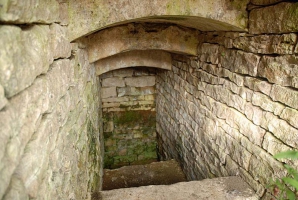 Situé à gauche du calvaire, le curieux puits double est creusé dans le coteau, avec son plafond à ressauts. Les systèmes de poulies et cordages ayant disparu, il est aujourd’hui difficile de s’imaginer ce puits en fonctionnement.