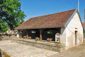 Lavoir daté de 1849 d'après une inscription dans la pierre, la façade présente des arcades en bois. La solide charpente est recouverte de tuiles en écailles. La fontaine alimente par la gueule d’un lion en fonte, quatre auges successives en façade, destinées à abreuver le bétail. Le lavoir a conservé ses bassins, autour desquels les lavandières lavaient et rinçaient debout, ainsi que son pavage ancien au sol.
