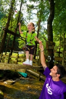 Accroparc de BellaVallis, parcours "L'île aux enfants" de 3 à 6 ans en ligne de vie continue.