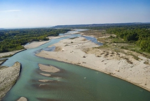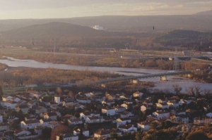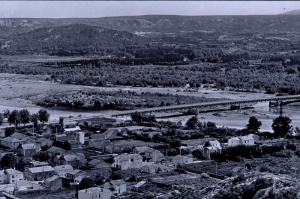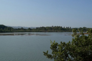 La Durance prend sa source dans les Hautes-Alpes, à 2300 m d'altitude, au pied du mont Chenaillet, volcan océanique fossile de 150 millions d'années, près du col de Montgenèvre, tout proche de l'Italie. Elle poursuit sa course dans les Alpes-de-Haute-Provence pour ensuite matérialiser la limite entre Bouches-du-Rhône et Vaucluse. Une fois franchie la clue de Mirabeau, la Durance s'étale de Jouques à Avignon où la rivière se jette dans le Rhône au sud-ouest de la Cité des Papes. La Durance qui se dévoile ici au loin par son lit en tresse, soulignée par une ripisylve importante, est considérée comme la mère nourricière de la Provence (biodiversité, pêche, ressource en eau, irrigation, hydroélectricité...).