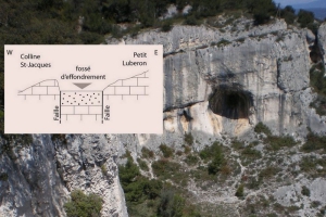 La colline Saint-Jacques (alt. 182 m) est formée de roches calcaires identiques à celles du Petit Luberon (alt. 726 m au Mourre de Cairas). Des roches de même âge et même origine, déposées au fond de la mer qui, il y a plus de 100 millions d’années, recouvrait toute la Provence. Sa limite orientale, très nette, correspond à une faille, une cassure des roches s’accompagnant d’un mouvement vertical d’un bloc par rapport à l’autre. De même, le Petit Luberon s’interrompt brutalement sur une autre faille. Entre ces deux failles, un fossé s’est effondré, il y a plus de 30 millions d’années, isolant la colline Saint-Jacques du massif du Luberon.