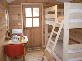 Située dans le petit verger de notre exploitation, notre roulotte construite par nos soins peut accueillir une famille de 4 personnes, les parents dans un lit de 140 x 190 et les 2 enfants dans des lits superposés.Pour votre confort, vous trouverez à 5 m de la roulotte une salle de bain privative avec une douche balnéo ainsi qu’une cuisine équipée accessible à partir de 2 nuitées.Vous pourrez prendre votre petit déjeuner à l’intérieur ou dehors avec une vue dégagée sur la campagne corrézienne.Si vous souhaitez vous restaurer, nous vous proposons une table d’hôtes ou un panier repas avec les produits issus de notre ferme. En hors saison, nous vous ouvrons la cuisine équipée sans supplément pour des paniers repas 4 personnes.La roulotte se loue également à la semaine (350 à 550 €)