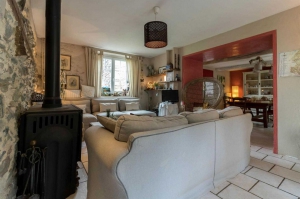 Située dans un hameau paisible, à l'orée d'une forêt, cette ferme rénovée vous accueille pour un agréable séjour. Vous relaxer sur la terrasse ou dans le hamac, partir en randonnée depuis la maison sur l'un des sentiers pédestres ou VTT qui passent devant la porte... ici, vous bénéficierez d'un environnement authentique et protégé. Terrain non clos.Vous êtes à 8km du plus grand réseau de spéléologie en France : le réseau Félix Trombe (Arbas à 6km), et à 8km du début du Parc Régional des Pyrénées Ariégeoises.Maison aménagée sur 2 niveaux :- au rez-de-chaussée : pièces de séjour (salle à manger et salon), WC. - à l'étage : 4 chambres disposant chacune d'une salle d'eau/WC privative et communicante. Chambre "Caramel" (1 lit double en 140cm), chambre "Sucre d'Orge" (1 lit double en 160cm + 2 lits simples en 90cm), chambre "Guimauve" (1 lit double en 160cm), chambre "Réglisse" (1 lit double en 140cm). Maison non fumeur.Table d'hôtes sur réservation : 27€/adulte. Possibilité de commander un panier pique-nique pour midi.