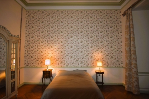 Au 1er étage du château de la Chauvelière, la chambre verte d’une superficie de 30 m² environ offre une vue dégagée sur l’Erdre. Cette vaste chambre est dotée d’un lit double (160 x 200 cm), elle dispose d’une très belle hauteur sous plafond et d’une grande salle de bains privative attenante avec w.-c.Convient à vos escales ou séjours de loisirs ou professionnels. Linge de maison fourni (draps et serviettes). Petit-déjeuner servi dans le salon voisin. Possibilité supplément chambre d’enfants contiguë.Passionné de patrimoine et particulièrement de châteaux et de mobilier ancien, je vous invite à partager mon intérêt en vous proposant de passer une nuit ou un séjour dans ce lieu historique plein de charme.Le château est situé à proximité de La Régalante : itinéraire cyclable qui rallie Le Mont-Saint-Michel à Nantes, j'accueille les randonneurs cyclistes et met à disposition un lieu de stationnement pour les vélos.Langue parlée : Anglais