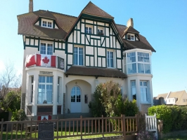 Il est à Bernières sur mer une maison tout simplement inscrite dans la mémoire collective, une grande villa édifiée à l'entrée de la plage. Étroitement liée au Débarquement, elle en est son véritable symbole.Visitable uniquement sur rendez-vous.Cette villa, bien dans le style de l'architecture balnéaire néo-normande, avec sa toiture rappelant les couvertures de chaume et ses faux colombages, fut édifiée en 1928 en bordure de mer, sur la toute récente digue, à l'entrée de la plage pour le compte de Léon Enault, directeur des grands magasins du Louvre, puis de l'Hôtel Crillon, place de la Concorde et de l'Hôtel Terminus, gare Saint-Lazare à Paris.6 juin, le Jour JIl est 7 heures 15, le Queen's Own Riffle of Canada débarque devant Bernières, avec pour mission de réduire la casemate de La Cassine. A 8 heures 05, ses hommes sont sur le rivage. L'état de la mer empêchant le débarquement de l'artillerie et du matériel lourd, ils subissent de très lourdes pertes. Plus d'une centaine de morts et de blessés. Néanmoins ils réduisent au silence la casemate de la Cassine, investissent l’Étrille et Les Goélands d'où ils délogent à la grenade plusieurs soldats allemands réfugiés dans les caves. Ceux-ci sont aussitôt fait prisonniers dans la cour sud, puis emmenés peu de temps après sur la plage où les survivants du Queen's Own, rejoints par les hommes du régiment de la Chaudière, regroupent les prisonniers allemands.La maison va être alors occupée par l'amiral anglais Cooper qui, jusqu'en septembre 1944, en fait son Q.G., ayant la lourde tâche de coordonner toutes les opérations de ravitaillement des troupes alliées progressant à l’intérieur du pays. En effet, une noria de péniches à fond plat arrive chaque jour d'Angleterre et débarque son chargement sur la plage de Bernières pour repartir à la marée suivante.Ainsi L'Etrille et les Goélands, certainement première maison libérée sur le sol français, est entrée dans l'histoire. Elle figure sur nombre de photos et de documents cinématographiques pris le Jour J par les correspondants de guerre tant canadiens qu'anglais, diffusés aux premières heures de la Libération -elle apparaît même sur un timbre canadien émis le 7 novembre 1994 !Depuis, elle est devenue le véritable symbole du Débarquement tant pour les bernièrais que pour nos amis canadiens et anglais. Et chaque année, L’Étrille leur est largement ouverte par la famille Hoffer. Nombreux sont les liens d'amitié tissés avec les Vétérans et leur famille qui voient en cette Famous House, la Maison du Canada. Aujourd'hui la partie gauche est gérée par l'association " la Maison des Canadiens" qui propose des visites guidées à l'année, gratuite et sur réservation par mail. Et la partie droite de la maison est gérée par la mairie qui proposera des expositions.