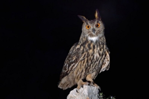 Le Grand-duc d’Europe (Bubo bubo) est le plus grand rapace nocturne d’Europe, avec une envergure de près d’1,80 m. À titre de comparaison, il est deux fois plus gros qu’une Chouette hulotte ! Ce hibou se nourrit de rongeurs tout comme d’oiseaux. Il est reconnaissable à ses yeux rouge-orangé et ses aigrettes de plumes, souvent confondues, à tort, avec des oreilles. Protégé à l’échelle de la France, il est assez fréquent en Basse Provence et sur le territoire du Parc où il niche, notamment, sur des parois rocheuses.