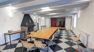 Superbe gîte de groupe dans l'ancien presbytère et dépendances, du village de Clairegoutte. Hébergement de 17 personnes réparties en chambres de 2 à 4 personnes. Une cuisine équipée professionnelle (lave-vaisselle, 2 réfrigérateurs, congélateur, four, piano de cuisson 5 feux, 4 éviers, lavabos). Magnifique grande salle à manger avec pierre et poutres apparentes, fourneau à bois. Trois sanitaires sont accessibles aux personnes handicapées. Cour fermée sur l'avant. À l'arrière du gîte : terrasse avec vue sur le parc et la forêt, calme absolu, accès au massif forestier du Chérimont (nombreuses randonnées). Gîte en gestion libre pour 19 personnes. Ménage 130€ pour le gîte complet. Caution 1000€. Draps housse et taies oreiller inclus. En supplément draps du dessus 3€. Il offre tout le confort nécessaire pour des nuits paisibles et reposantes. Une salle de réception peut également être mise à disposition. Elle comprend un espace salon avec tv, des tables et chaises, une cheminée et une petite scène.