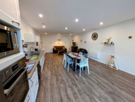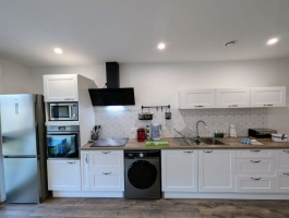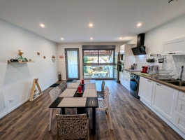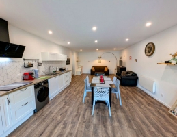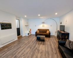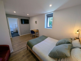 Grand gîte pouvant accueillir de 5 à 7 personnes (avec canapé convertible sur demande (en supplément)). Ce gîte tout inclus vous garantit un séjour sans contraintes : draps et linge de toilette fournis, lits faits à l’arrivée, ménage final inclus, ainsi que toutes les charges comprises.Le grand séjour/salon spacieux et lumineux s’ouvre sur une cuisine moderne entièrement équipée. Vous y trouverez :Deux canapés, dont un convertible pour un couchage d’appoint,Une télévision à écran plat avec console Wii et une sélection de jeux,Une grande table adaptée à la capacité d’accueil.La cuisine fonctionnelle dispose de tout le nécessaire pour vos repas :Plaques à induction, hotte aspirante, four et micro-ondes, réfrigérateur grande capacité, bouilloire, grille-pain, 1 cafetière filtre et 1 à dosette, presse-agrumes, ustensiles de cuisine variés, ainsi que de nombreux rangements (pas de lave vaisselle).Pour votre confort, une machine à laver et un étendoir à linge sont également mis à disposition.Les espaces nuit se composent de :Chambre rouge (2 personnes) : équipée d’un lit 140x200, d'une télévision écran plat, d’une grande armoire, d’un bureau, d’une table de chevet par personne avec lampe, d’un éclairage central près du lit et d’un miroir en pied.Chambre bleu (3 personnes) : équipée d’un lit 140x200, d’un lit 90x200, d'une télévision écran plat, de rangements et d’une terrasse privative avec accès direct depuis la chambre.Chaque chambre bénéficie de sa propre salle d’eau privative, comprenant une grande douche, des toilettes, une vasque avec rangements, pour une intimité optimale.À l’extérieur, profitez d’un terrain privatif et d’une terrasse aménagée avec salon de jardin et barbecue, parfaits pour vos moments de détente. Une place de parking privative est également disponible devant l’hébergement.
