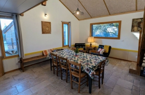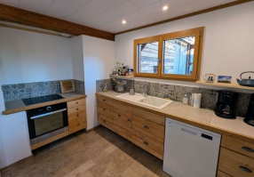 Dans un cadre moderne et chaleureux, ce gîte tout confort, proposé en tout compris, peut accueillir jusqu’à 6 personnes. Il se compose de 3 chambres, chacune aménagée avec soin : deux chambres disposent de lits simples jumelables, tandis que la troisième propose un lit double (160x200). Vous trouverez également une salle d’eau moderne au rez-de-chaussée, équipée d’une grande douche, ainsi qu’un WC indépendant au rez-de-chaussée et un autre à l’étage. La cuisine, entièrement équipée, vous permettra de préparer vos repas avec aisance grâce à ses équipements de qualité : lave-vaisselle, four, réfrigérateur avec congélateur, machine à café classique et expresso, bouilloire et grille-pain. Le séjour lumineux offre un espace convivial, avec une grande table idéale pour partager des repas en famille ou entre amis. Un coin détente avec télévision et fauteuils à l’étage vous offrira des moments de relaxation. Une machine à laver ainsi qu'un étendoir à linge sont à votre disposition au rez-de-chaussée. À l’extérieur, vous pourrez profiter d’une grande terrasse aménagée, équipée d’un barbecue et d’une table pour vos repas en plein air. Le gîte, alliant harmonieusement modernité et touches chaleureuses de bois, constitue un lieu idéal pour un séjour reposant et agréable.