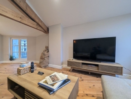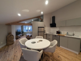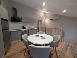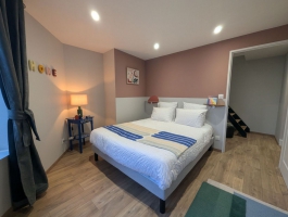 Appartement au 1er étage sur deux niveaux. Au premier niveau, un salon, une cuisine aménagée, une chambre pour deux personnes, salle d'eau et toilettes.Accès au deuxième niveau par un escalier de meunier, une chambre avec deux lits de 90.Accès au pédalo à titre gracieux selon la durée du séjour, leur disponibilité et la date d'ouverture.