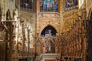 La Cathédrale Saint-Pierre telle « un vaisseau de pierre dorée aux profonds contreforts » donne l'aspect, vue de loin, d'une église forteresse. Elle domine la ville de Condom et regarde, à ses pieds couler la Baïse.Construite au 16ème siècle, sur l’emplacement d’une ancienne église abbatiale du 11ème siècle, son plan est typique des églises méridionales gothiques à large nef unique avec chapelles latérales entre les contreforts. L'important évêché de Condom créé en 1317, connu de nombreux évêques dont Jacques Bénigne Bossuet (1669-1670).Son choeur du 19ème siècle s'inspire de celui de la cathédrale Sainte-Cécile d’Albi pour remplacer l’ancien choeur détruit à la Révolution. En arrière du choeur, s’ouvre une chapelle dédiée à la Vierge datant du 14ème siècle. Lors de la construction de la cathédrale, elle a été conservée et intégrée au nouveau bâtiment. D'aspect plus sombre avec ses fenêtres étroites, elle contraste avec la nef largement percée de baies gothiques flamboyantes. A noter également, l'élégance des clés de voûte du vaisseau central.