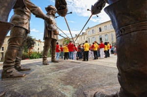 Au coeur de la cité épiscopale de Condom, vous attend le plus célèbre des gascons aux côtés de ses inénarrables compagnons d’aventure !Oeuvre du sculpteur géorgien Zurab Tsereteli, la statue de "D'Artagnan et les 3 Mousquetaires", popularisé dans le monde entier par Alexandre Dumas, se dresse sur la place Saint-Pierre depuis son inauguration en 2010. Elle s’impose à tous de par sa taille (2,50m) et son poids (5,5 tonnes).Saurez-vous reconnaître l’identité de chaque mousquetaire ? Si le doute vous prend, rendez-vous à l’Office de Tourisme de la Ténarèze, à deux pas de la statue, pour y trouver toutes les réponses à vos questions.Devenu un site incontournable pour qui vient séjourner en Ténarèze, votre visite de la ville de Condom, Grand Site Occitanie, sera l’occasion de prendre la pose au côté de ces géants de bronze.