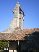 L'église Saint-Martin d'Heux est idéalement située sur une ancienne motte féodale occupée au 13ème siècle par une maison forte composée d'une tour de guet à laquelle était adossée l'église.De plan rectangulaire, l'entrée se fait par un porche (emban) qui protège l'entrée du 14ème siècle. Contreforts et clocher-mur sont visibles de l'extérieur. Depuis 1977, l'édifice est inscrit aux Monuments historiques.Saint-Martin d'Heux offre un point de vue idéal sur le vignoble gascon et la chaîne des Pyrénées. Pour savourer et comprendre le panorama, rendez-vous derrière l'église. Découvrez l'installation "Les Clés des Champs" et surfez sur la mer de collines. Prenez place pour rêver en creux...et en bosse. On se laisse emporter par les flots, le temps d'une escale...Voyagez également avec le circuit "Armagnac Confidentiel, Voyages 1", pour sillonner la région de Condom à Montréal-du-Gers à la rencontre des domaines viticoles et chapelles au milieu des vignes.
