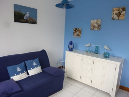ESPRIT BORD DE MER - Proche de l'habitation des propriétaires, appartement mitoyen dans pavillon neuf avec terrasse privative (table de pique nique) et jardin commun (portique). Rez-de-chaussée : séjour-salon (BZ, TV) avec cuisine (MO, combi-congel), salle d'eau avec WC (LL). Etage : 1 chambre (lit 140) + 2 BZ 1 personne. Wifi. Location draps. Matériel bébé. Port-en-Bessin 5km, Bayeux 15km. La propriétaire, responsable d'une association sportive, saura vous conseiller sur les circuits de randonnée de la région. Anglais parlé.