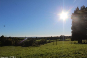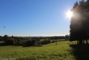 Avant de traverser la départementale, vous pourrez admirer un point de vue à 180° sur le Pays de Lubersac-Pompadour, et plus précisément, des communes de Lubersac et de Pompadour.
