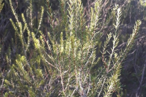 En quittant la plaine cultivée, après le passage de deux petits ravins, le parcours entre dans un bois qui se prolonge vers l’ouest sur la colline de Piébroux. Le sol de tout ce secteur a la particularité d’être acide, dans une région où le calcaire domine. Ainsi, on peut y rencontrer des arbres et plantes peu visibles habituellement, parmi lesquels : le pin maritime, haut, aux longues aiguilles et grands cônes, la bruyère à balais, grande, aux fleurs verdâtres et la petite callune aux fleurs roses.