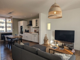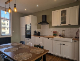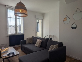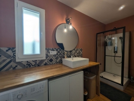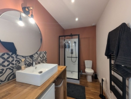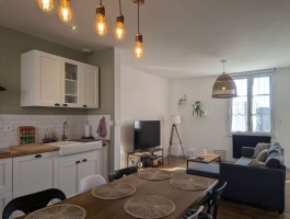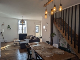 En effet, ce logement dispose d'une grande terrasse aménagée d'un coin détente et d'un coin repas / barbecue. Vous profiterez aussi d'un grand jardin ainsi que de son verger.Vous pourrez vous stationner devant la maison, où le stationnement est gratuit.Le logement dispose d'une pièce de vie ouverte au rez-de-chaussée : cuisine, salon, salle à manger et WC.La cuisine dispose de tous les éléments nécessaires, deux cafetières (senseo et dolce gusto) et d'appareils de cuisson conviviale.Dans le salon, vous disposerez d'une télévision connectée.Au premier étage, vous trouverez une première chambre avec 2 lits simples 90*190 avec un dressing attenant. La deuxième chambre dispose d'un lit double 140*190. Vous trouverez aussi la salle de douche où se trouvent une machine à laver ainsi que les deuxièmes WC.Au rez-de-chaussée, vous accéderez directement sur une terrasse, à l'arrière de la maison sans vis-à-vis, composée d'un coin détente, d'un coin repas et d'un barbecue à disposition (les ustensiles sont fournis mais pas le charbon). De la terrasse, vous pourrez vous détendre face au jardin et ses vignes ainsi que face au verger.