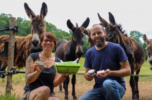 Le Domaine de Tamara produit des savons à base de lait d’ânesse bio (40 %) et fabrique une gamme de cosmétiques labellisés « Nature & Progrès ». Avec un élevage composé d’une trentaine d’ânes, certifié en agriculture biologique par le label Ecocert, Alan et Caroline D’Hollander ont le vent en poupe et leur activité connaît une croissance remarquable.Alan et Caroline sont un couple passionnément engagé dans la cosmétique bio. De leurs mains naissent, chaque jour, les produits hors-normes d’un parcours hors du commun. Qui se lancerait exploitant agricole maître-savonnier de surcroît ?Eux l’ont fait, et le résultat ne manque pas de séduire par son exotisme.Au Domaine de Tamara, on transforme le plus noble des laits d’ânesse, celui tiré à même la propriété… et à la main ! Un breuvage rare, précieux et pourtant intégré à 40 % dans les recettes de la gamme.