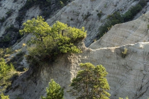 Les versants ouest des collines et plateaux de la Brugière et du Pâty, sont en grande partie constitués d’argiles blanches sableuses invisibles depuis la vallée de la Laye à l'est. Le ravinement qui s’est opéré au cours du temps sur ces pentes, offre de superbes paysages inattendus...