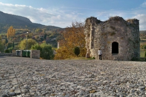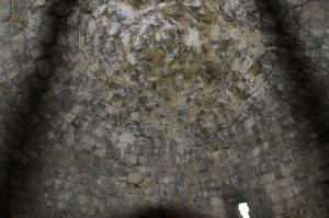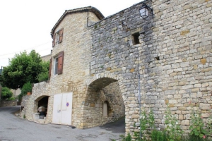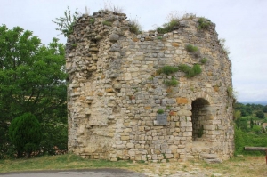 La tour ronde isolée du XIIIe s est le seul fragment encore visible du château, qui occupait tout l’espace de cette place. On ne sait que peu de choses de ce dernier, si ce n’est qu’il fut érigé au XIIIe s., jusqu’au XVIIe et définitivement détruit à la Révolution. Quelques parties souterraines subsistent dans les caves et maisons qui se sont construites à son emplacement et son esplanade a été annexée au XIXe s. pour en faire l’aire de battage communale. Cette surface caladée (pavée en pierre sèche sur le chant) et circulaire de près de 900 m², servait aux foulages des récoltes de locales ; blé, orge, avoine, seigle, lentilles, pois chiches haricots...