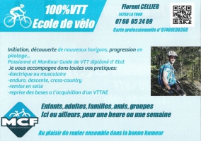 Je m'appelle Florent CELLIER, je suis moniteur VTT diplômé d’État (et accompagnateur en montagne), je vous accompagne dans toutes vos activités autour du vélo tout terrain! Enduro, cross-country, DH, VTTAE sur neige, etc... Je vous propose des sorties adaptées et des conseils avisés pour progresser techniquement et physiquement, reprendre les bases (à l'achat d'un vélo électrique par exemple) ou vous guider sur les plus beaux trails! Quelques soient votre niveau, votre âge, vos envies et votre motivation, je vous guide dans la convivialité et en sécurité pour une expérience optimale!