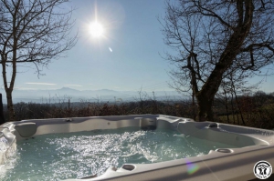 Vue spectaculaire sur la chaîne des Pyrénées depuis le jacuzzi, maison individuelle très lumineuse à 1.6km de la ViaGarona (étape Castillon-de-Saint-Martory / Saint-Gaudens)