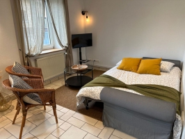 Découvrez notre charmant appartement le “Cosy Bretzel " de 70 m² alliant confort et espace, niché au cœur de la magnifique région alsacienne. Idéalement placé dans la commune de Gresswiller, il constitue un point de départ privilégié pour explorer les vignobles, les montagnes et la plaine qui caractérisent la riche diversité de l'Alsace.L’appartement a subi une rénovation complète et est idéalement situé au rez-de-chaussée d'un charmant corps de ferme réhabilitée avec soin. Il offre un séjour inoubliable pour 2 à 4 personnes à la recherche de confort, de style et d’authenticité.La chambre spacieuse avec un lit de 160x200 promet des nuits de repos réparatrices. La salle de bains élégante est équipée d'une douche facile d'accès et fournit tout le nécessaire pour votre confort. Une cuisine tout équipée et un espace de travail sont à votre disposition pour satisfaire vos envies culinaires.Le spacieux salon de 30 m² est l'endroit idéal pour vous détendre ou partager un repas tout en profitant de la lumière naturelle et de la vue sur le village environnant.