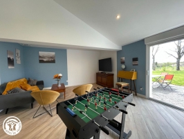 Ce gîte vous propose un séjour en campagne, à 15 km des plages de Longeville sur Mer. Vous profiterez de la proximité des sites de loisirs : parc d'attraction familial du château des Aventuriers (1,7 km), parc d'accrobranche O'Fun Park (8,8 km) et parc aquatique O'Gliss Park (10 km). Vous aurez également l'opportunité de découvrir la commune de Talmont-Saint-Hilaire (9,8 km), de pratiquer le golf à Bourgenay (16 km) ou de visiter la ville des Sables d'Olonne (25 km).Cette maison se compose d’un séjour/salon/cuisine avec babyfoot, de 2 chambres dont une équipée d’un lit 140 avec TV et l'autre équipée de 2 lits 90 jumelables, d’une salle d’eau et d’un WC indépendant. Vous disposerez également d'une entrée/buanderie commune avec le gîte mitoyen. L'ensemble de l'hébergement est climatisé. A l'extérieur, vous profiterez d'une terrasse gravillonnée privative (salon de jardin, plancha, transats...) et d'un terrain clos commun. Vous pourrez également accéder à l'étang de pêche des propriétaires situé en contrebas (pêche no-kill).L'hébergement se situe à proximité du logement des propriétaires et est mitoyen à un autre gîte (H85G030195). Possibilité de louer les deux gîtes en un ensemble : H85G030197.Chauffage, draps, linge de toilette et serviettes de plage inclus. En option : Ménage de fin de séjour : 100€/séjour.En supplément : Taxe de séjour.