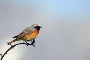 Le rougequeue à front blanc, cousin du rougequeue noir, s’en distingue par… son front blanc, ainsi que par son poitrail orange. Du moins chez le mâle, la femelle de l’un comme de l’autre étant plus terne et brunâtre, mais avec une queue orangée également. Il revient d’Afrique début avril et trouve dans les alentours une cavité dans un arbre ou dans un vieux mur pour nicher.