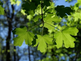 Le sentier du retour est bordé de nombreux feuillus où on peut distinguer frênes, chênes et différents érables. L’érable champêtre se distingue par ses petites feuilles à lobes arrondis. Les ailes de ses fruits nommés samares, qui aideront à la dispersion en faisant « l'hélicoptère », sont opposées. C'est un arbre rustique s'adaptant à bien des types de sols.