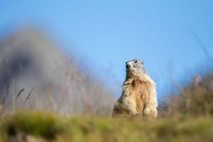 Dans l’alpage, l’emblématique marmotte émet un sifflement aigu et puissant pour prévenir ses comparses qu’un danger approche : l’aigle ou le renard rôde, à moins que ce ne soit un randonneur ! Elle vit en famille et délimite son territoire en frottant ses joues sur les rochers ou en déposant ses crottes. Qu’un indésirable approche, il sera pourchassé avec vigueur. L’hiver, elle se réfugie dans son terrier pour hiberner et n’est visible que d’avril à octobre.