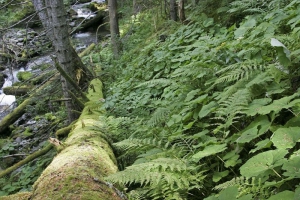 La mégaphorbiaie est une association végétale de mega plantes s’installant dans les lieux où le sol, humide en permanence, est profond et riche en éléments nutritifs. L’adénostyle à feuilles d’alliaire, la laitue des Alpes, l’impératoire faux benjoin ou l’huguenie à feuille de tanaisie font partie de cette association.