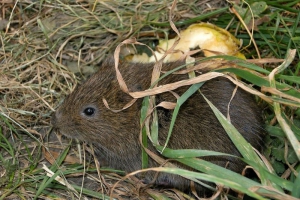 Des coulées dans les roseaux et des trous de 6 à 7 cm de diamètre… Un campagnol amphibie est passé par là ! Ce gros rongeur au pelage brun foncé sur le dessus creuse son terrier dans la berge du ruisseau. Cette espèce dont le lieu de vie est lié à l'eau ne cause pas de dommage aux cultures. N'ayant pas une reproduction avec de fortes pullulation, il est en faible effectif et est menacé de disparition.