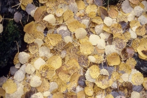 Ici un bois de tremble, au tronc lisse et verdâtre, aux feuilles arrondies et crénelées prenant de magnifiques couleurs à l'automne. Le pétiole (la « queue ») des feuilles du tremble est aplati et tordu, aussi offre t-il une prise au moindre souffle d'air, ce qui a pour effet de faire « trembler » le feuillage !