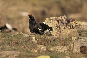 Ici vit le tétras lyre, encore nommé petit coq de bruyère, gros oiseau de la taille d’une poule. Le mâle est noir avec une queue en forme de lyre, la femelle est brun roux. Il vit en limite de forêt dans les versants nord. La femelle niche au sol, vers les prairies où les criquets pleins de protéines nourriront la nichée ! Dans certains alpages, les zones de reproduction sont interdites aux troupeaux pour éviter le piétinement des œufs et poussins.