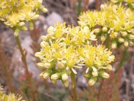 Sur les zones rocailleuses s'étalent de petites plantes « grasses » aux fleurs étoilées, blanches pour certaines espèces, jaunes pour d'autres. Leurs feuilles sont souvent cylindriques, pointues à l’extrémité ou non selon les espèces, et pleines d'eau : vivant sur des lieux secs, elles font ainsi des réserves pour les jours difficiles ! A leur hauteur, si près de la roche, ça chauffe en été !