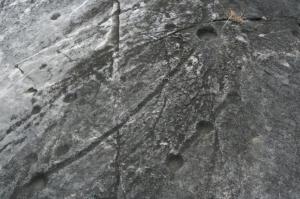 Une pierre à cupules remarquable et riche en inscriptions. Depuis le replat très joli panorama sur la vallée et la chapelle Saint-Jacques.La roche de la Pérouse se situe dans un pâturage au dessus du manoir de la Pérouse, à 760 m d'altitude, à l'aval du Rocher du Siaix.Elle porte des marques de stries glaciaires. La roche se trouve sur un replat qui pouvait accueillir une assemblée. C'est en ce lieu que l'on définit l'emplacement des Ceutrons (peuple celte) préalable à l'attaque du procurateur romain relaté dans la légende de Irnec.Les gravures sont de type polissage, piquetage et incision et ont été inventoriées de la manière suivante :- 176 cupules gémellées, allongées, dispositif désordonné et relié.- 6 cruciformes : branches en T, symbole chrétien.- 1 stelliforme- représentation méandriforme- zoomorphes : pisciforme- inscriptions en chiffres.A 150 mètres à l'ouest de celle-ci se trouve une autre roche également polie par un événement glaciaire à 800 m d'altitude au bord de l'ancien chemin muletier de Saint-Marcel à Montgirod. Elle marque la limite des 2 communes. 16 cupules recensées, 2 croix portant les millésimes 16BE97 et 1936.L'étymologie du mot cupule le fait venir du latin "petite coupe". Cela se dit des cavités taillées sur des roches préhistoriques ou mégalithiques.Leur origine est attribuée aux phénomènes d'érosions mécanique et chimique dus à la présence quasi permanente d'eau de pluie ou de ruissellements. L'eau stagnante contenue dans les cavités possède un pH très bas et a donc une action corrosive. Par ce processus extrêmement lent dans le temps, plusieurs cupules voisines peuvent finir par se rejoindre, on parle alors de cupules coalescentes.