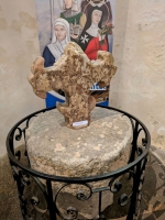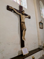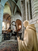Dans l’église, découvrez l’exceptionnel Christ en bois polychrome (monument historique), le ciborium du XXe siècle dans le chœur roman, les châsses contenant les reliques des saint Gausbert et Bernard et les croix de bornage de Sainte-Anne et du Cambon.