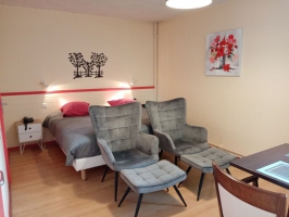 Le studio 21 est pourvu d'une télévision à écran plat ainsi que d'une salle de bains privative avec une douche. La kitchenette comprend un réfrigérateur, un four, une cafetière filtre, une bouilloire, un grille-pain et un micro-ondes ainsi qu'une plaque de cuisson électrique de deux feux. Le linge de toilette est inclus dans le prix et les lits sont faits à l'arrivée. La prestation ménage n'est pas inclus dans le prix. Vous pouvez choisir la formule "Tranquillité". Le ménage sera fait à votre départ uniquement. Pendant votre séjour, le ménage est à votre charge.Pour votre tranquillité, choisissez a formule "Tranquillité Plus". Le nettoyage complet de votre studio sera réalisé en milieu de séjour et à votre départ, au prix de .Les animaux sont les bienvenu au prix de 2 € par jour.Le petit déjeuner peut vous être servis en chambre ou au salon pour un prix de 8 € par personne.La connexion Wi-Fi et le parking privé fermé sont tous deux disponibles gratuitement.