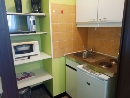 Le studio 1 est pourvu d'une télévision à écran plat ainsi que d'une salle de bains privative avec une douche. La kitchenette comprend un réfrigérateur, un four, une cafetière filtre, une bouilloire, un grille-pain et un micro-ondes ainsi qu'une plaque de cuisson électrique de deux feux. Le linge de toilette est inclus dans le prix et les lits sont faits à l'arrivée. La prestation ménage n'est pas inclus dans le prix. Vous pouvez choisir la formule "Tranquillité". Le ménage sera fait à votre départ uniquement. Pendant votre séjour, le ménage est à votre charge.Pour votre tranquillité, choisissez a formule "Tranquillité Plus". Le nettoyage complet de votre studio sera réalisé en milieu de séjour et à votre départ, au prix de .Les animaux sont les bienvenu au prix de 2 € par jour.Le petit déjeuner peut vous être servis en chambre ou au salon pour un prix de 8 € par personne.La connexion Wi-Fi et le parking privé fermé sont tous deux disponibles gratuitement.