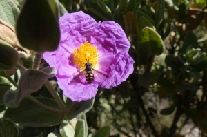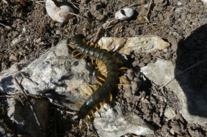 C’est au printemps, notamment en avril et mai, que les insectes sont les plus nombreux, ou du moins les plus visibles, suivant de près l’explosion floristique. Floricoles ou prédateurs d’autres invertébrés, on les voit partout dans la garrigue, certains plus visibles que d’autres comme les pollinisateurs : papillons, abeilles sauvages, syrphes… D’autres insectes et invertébrés, criquets, fourmis, araignées, scolopendres, petits scorpions, etc. vivent plus près du sol. Il suffit simplement de s’amuser à scruter le sol un moment ou de soulever quelques belles pierres plates pour s’en rendre compte (à remettre en place comme elles étaient !).