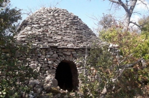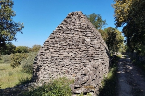 Sur la droite du sentier, se trouve une curieuse bâtisse, reflet d'un savoir-faire ancestral : la borie. C'est une construction originale par l’emploi unique de la pierre (sans mortier) et sa technique de montage. Le couvrement ou la voûte est dite en encorbellement ; c’est une technique qui consiste à poser les pierres en assise avec dépassement de la rangée supérieure sur l’inférieure. Ces cabanes de pierre ont été construites par des bergers et des paysans, pour la plupart entre le XVIIIe et le XIXe s.