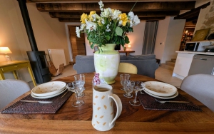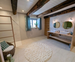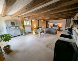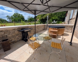 Ce gîte d’exception, classé 5 épis, a été aménagé avec raffinement dans une ancienne étable entièrement réhabilitée. Mariant le charme des matériaux d'origine à un aménagement contemporain de grande qualité, il constitue un cocon idéal pour une escapade à deux, placée sous le signe du bien-être et de la sérénité.Dès l’entrée, vous découvrirez une cuisine entièrement équipée, ouverte sur un espace repas lumineux et convivial, prolongé par un salon élégant doté d’un canapé très confortable, d’une TV connectée et du Wifi haut débit. La chambre spacieuse, décorée avec soin, propose un lit king size (180x200) avec linge haut de gamme fourni, et s’ouvre sur une salle d’eau contemporaine avec douche à l’italienne, WC, et espace spa privatif.Pour un séjour placé sous le signe du bien-être, un espace dédié vous invite à la détente : baignoire balnéo, coin tisanerie avec machine à café et sélection d’infusions, ainsi que deux chauffeuses convertibles en couchage d’appoint pour une relaxation complète.À l’extérieur, la terrasse privative offre un panorama apaisant et se prête à des instants de convivialité en toutes saisons, grâce à un salon de jardin, une plancha électrique, un braséro ainsi qu'un bain nordique chauffé.Le séjour est proposé en formule “tout inclus” : charges comprises, linge de maison fourni, petit-déjeuner inclus, ménage, lits faits à l’arrivée. Petit déjeuner pour 2 personnes offerts. Au delà de 2 personnes, le montant s'élèvera à 30E par personne et par nuit en supplément.. Parking privatif sur place. Sur demande au moment de la réservation : lit bébé et chaise haute disponibles sans supplément.Instant Bien Etre à réserver sur place: avec Massage à la carte avec Nadège Guillaume " Liberez vous de vos maux " au préalable au 06 83 64 96 05En option, des plateaux repas (raclette, pierrade, apéritif ou apéro dînatoire) peuvent être proposés par les propriétaires, sur demande après réservation.