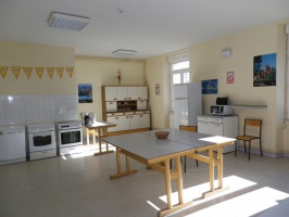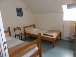 Gîte d'étape et de groupe dans un village. 6 chambres dont 1 pour 2 personnes avec salle d'eau et WC privés, 1 avec 2 lits, 2 avec 3 lits, 1 avec 4 lits et 1 avec 6 lits, salle de séjour avec coin cuisine, 2 cuisinières, lave-vaisselle, télévision, magnétoscope, 2 réfrigérateurs/congélateur, micro-ondes, bouilloire, lave-linge avec jeton, sanitaires communs (5 douches, 7 WC), chauffage central, parking, pré. Possibilité accueil cavalier.