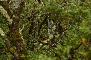 La forêt occupe environ un tiers du territoire de Lauris. Elle s’étend notamment au nord de la commune, sur le versant du Petit Luberon. C’est le plus souvent une forêt de chêne vert, de quelques mètres de hauteur et un peu ouverte, mêlée sur les pentes rocailleuses d’une garrigue plus ou moins dense à Chêne kermès, filaires et cistes. Essence pionnière, le Pin d’Alep est également bien présent sur les pentes très chaudes. Son sous-bois prépare en principe l’arrivée et la croissance de la chênaie verte qui est sensée le supplanter un jour.