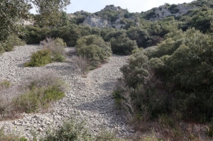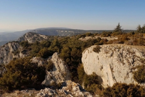 De cette petite épaule, en se retournant on domine le territoire de la commune de Lauris qui s’étend sur 552 m de dénivelée et présente plusieurs formes de reliefs caractéristiques : le plateau sommital du Petit Luberon, des parois verticales, des vallons encaissés (vallon de Vallauris, combes de Recaute, du Sautadou…), des crêtes (tête de Maupas…), des pentes abruptes chargées d’éboulis, des coteaux, des terrasses fluviatiles, la plaine alluviale de la Durance…