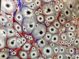 Anne LASSERRE-GASQUEZ est née en 1963 dans la région de Charleville.La dominoterie est vite devenue une passion pour elle, de même que la marbrure. Alliant sa propre formation et son goût de l’échange, elle est autant formatrice, qu’exposant, que créatrice de nouveaux modèles.Son atelier basé à Trémolat lui permet de créer les plus beaux papiers marbrés à l’eau de la région du sud-ouest de la France, ainsi que de la marbrure sur tranche, de la décoration intérieure, de la soie marbrée, des bougies, des oeufs, des sets de table, ... tous marbrés !