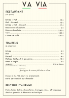 À la fois restaurant, traiteur et épicerie fine, Va via propose charcuteries italiennes, bruschettas, fromages, burrata, pâtes, pain, pizza, vins, huiles, sauce ou encore panetonne... Au menu un large choix : légumes, quinoa, gratins de pâtes, lasagnes, parts de pizza… Tout est fait maison, à partir de produits de qualité 100 % italiens ! Laissez vous conseiller et séduire par la cuisine de Béatrice tombée dans la marmite de la cuisine italienne. Un gage que sa cuisine est une valeur sûre : c'est elle qui cuisine pour les joueurs du Racing Club de Lens les soirs de match.Aux beaux jours, profitez d'une jolie terrasse au calme située à l'arrière du restaurant.