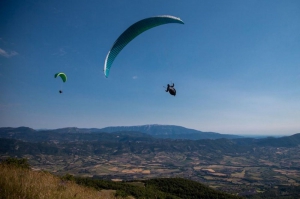 Dans les Baronnies provençales, le parapente est une activité phare qui attire les passionnés, amateurs et professionnels. À Mévouillon, le site est réputé, et les décollages s’enchaînent au-dessus des vallées, des crêtes et des cultures de lavande. L'occasion de découvrir les richesses de cette région sous un autre angle ! De nombreux clubs sont implantés sur le territoire, comme à Mévouillon en contrebas.